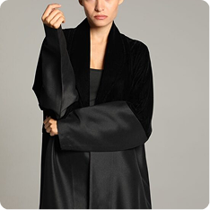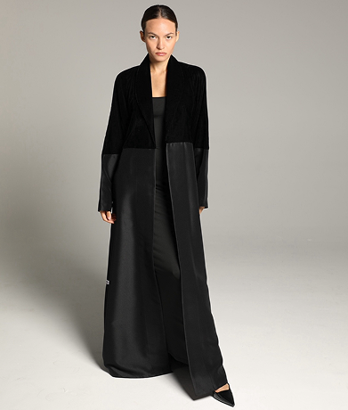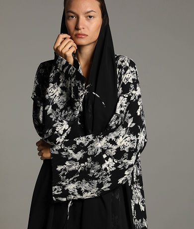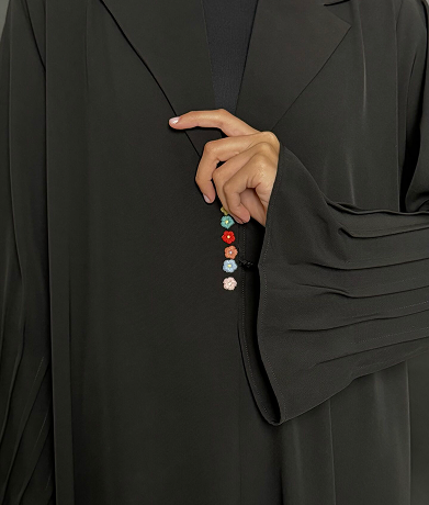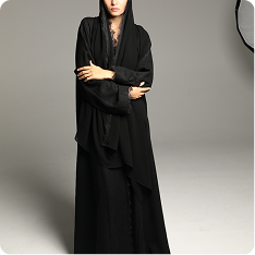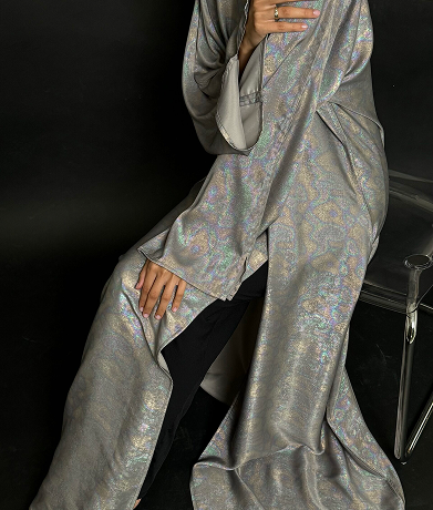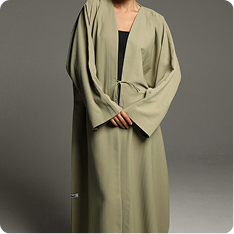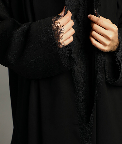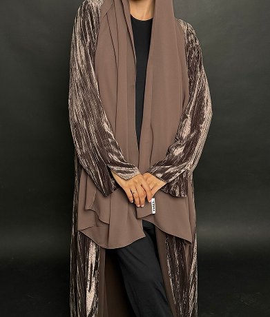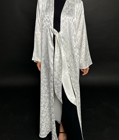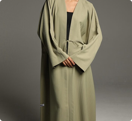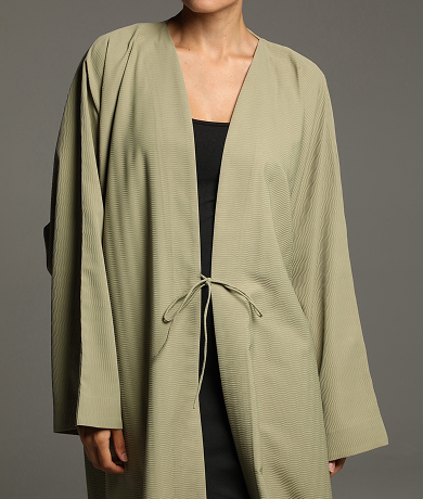 This abaya features a soft, textured fabric with a relaxed silhouette, enhanced by a minimalist tie-waist detail for a refined yet effortless look. Its versatile design makes it perfect for both casual and formal occasions, embodying timeless sophistication.