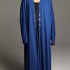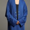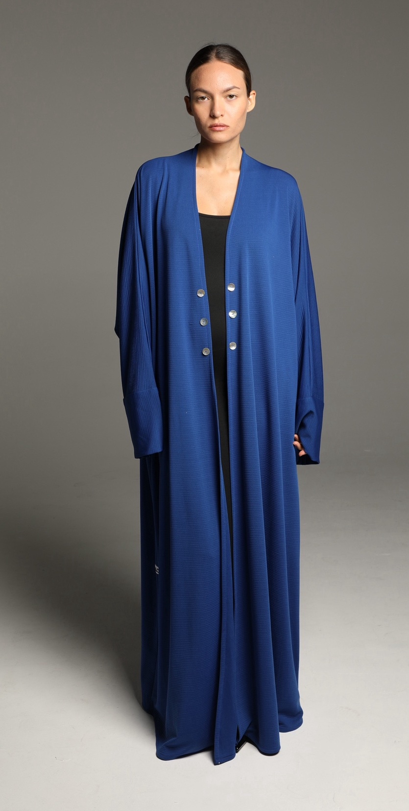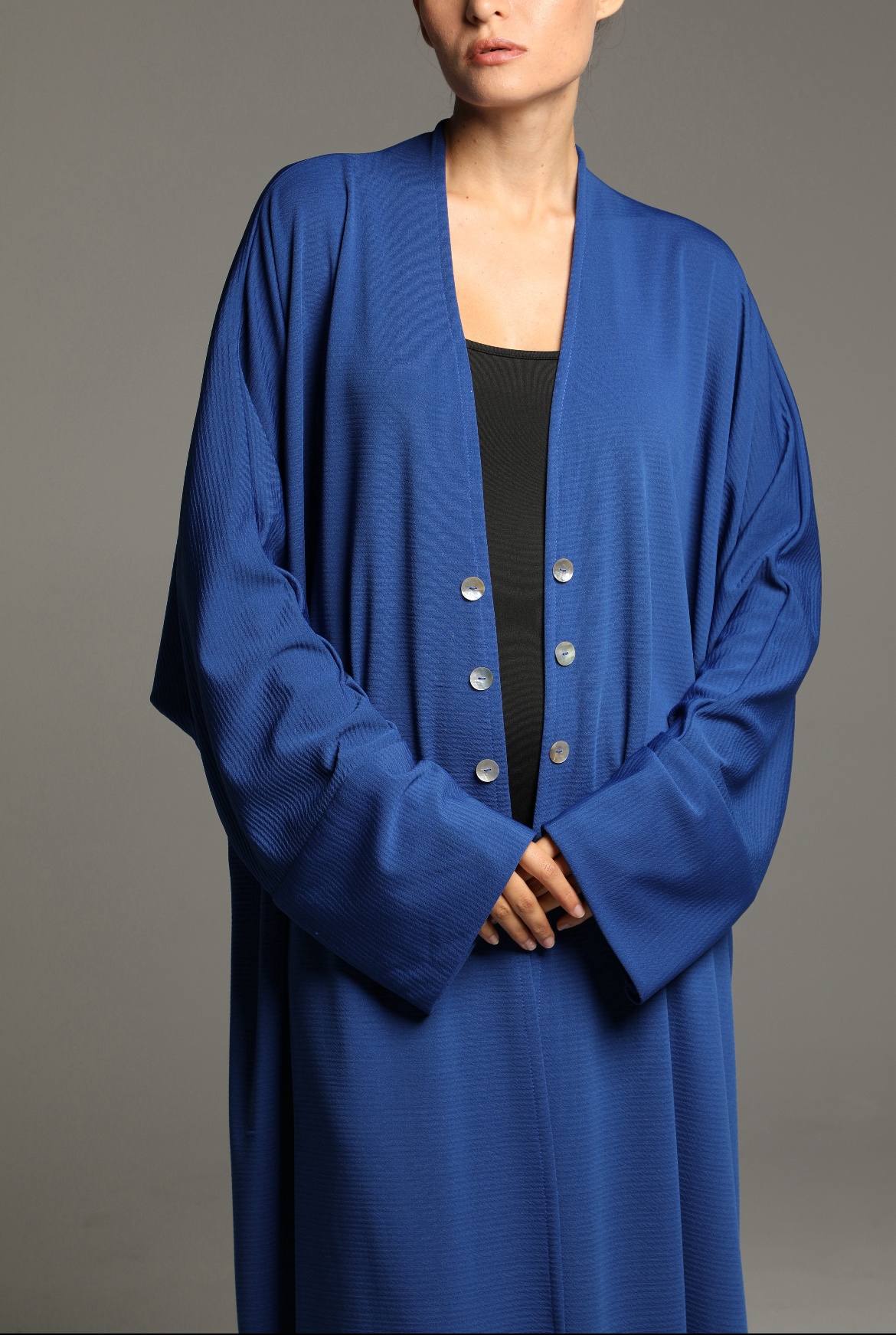 A timeless piece designed for effortless versatility. Featuring a sleek textured finish and elegant metallic button accents, this abaya combines comfort and sophistication, making it a must-have staple for every occasion.
